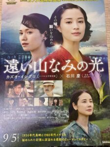 石川慶監督の『遠い山なみの光』です。ちょっとしたタスクだったので観たのですが、その前に原作の小説を読んでいました。カズオ・イシグロのデビュー作『 A PALE VIEW OF HILLS (遠い山なみの光)』(1982)です。最初の邦題は『女たちの遠い夏』です。当時20代後半の男性が書いたものというのが驚きです。